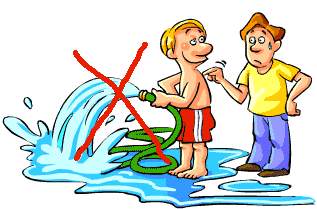 14- باغچه خانه را در طول روز آب پاشی نکنید و این کار را به عصر و شب محول کنید تا آب بخار نشود. میزان آبی که هر شخص در موقع آبیاری یکساعته باغچه هدر می دهد می تواند مصرف روزانه یک خانواده چهار نفری را تامین کند.