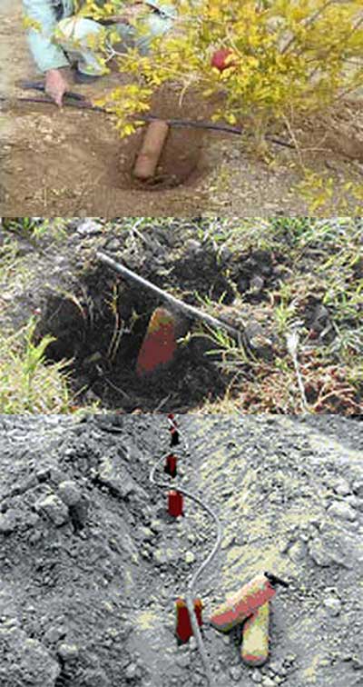 مورد استفاده در خاکهای صخرهای و شیبهای تند : سیستمهای آبیاری موضعی را میتوان طوری طراحی کرد که در هر نوع توپوگرافی به نحو موثر قابل استفاده باشد . در اراضی صخرهای ، حتی اگر فاصله بین درختان نامنظم و اندازه آنها متفاوت باشد ، میتوان آبیاری موضعی را به نحوی موثر به کار گرفت زیرا آب بسیار نزدیک به هر درخت پخش میشود .